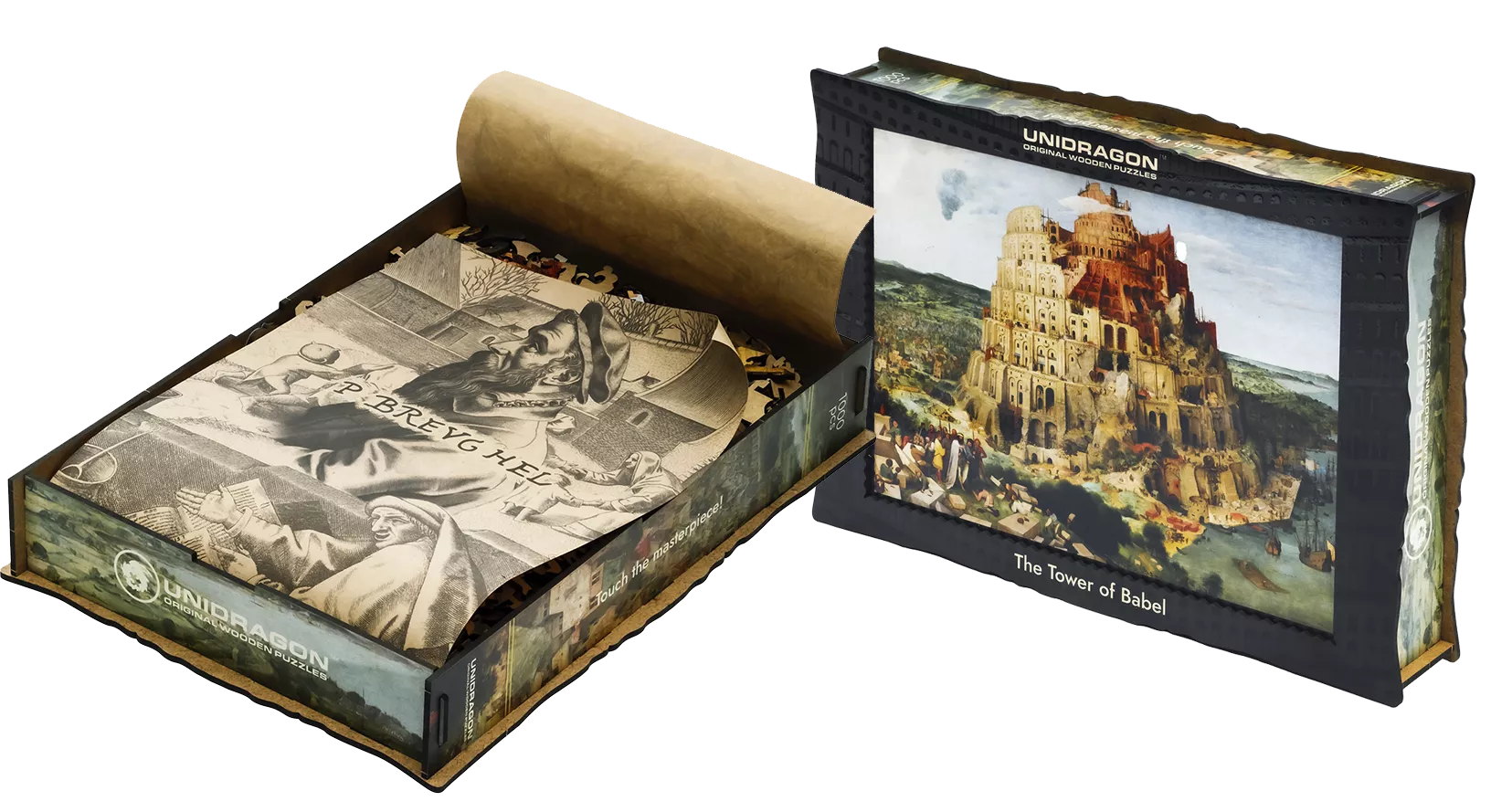 Bruegel's minute details and incredible colors will immerse you in the world of ancient biblical legends and the Dutch Renaissance. We followed the master's footsteps and used layer-by-layer volumetric printing to achieve the effect of multiple layers. Among the whimsy pieces there are Bruegel's paintings and hobbies and hidden thematic mini-puzzles. Step by step you will build your Tower.