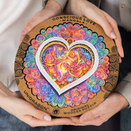 Love is when you fit together perfectly like puzzle pieces. The Mandala of Conscious Love puzzle — a captivating journey of hidden love, told through vibrant colors, fluttering butterflies, and tender doves.