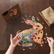 Rabbits are modest animals, but our hero is not like everyone else. He is colorful, has precious fur, and hides a whole fairy-tale world inside. It has giant carrots and a variety of animals, such as horses, moles, birds, fish, and even little deer! And many-many other rabbits doing their rabbit things. If you're attentive enough, you will find a mini-puzzle in the center of the puzzle with two rabbits guarding a gigantic carrot. Take your time and build this puzzle without a rush. After all, this rabbit is not the one who is being late to the Queen's tea.